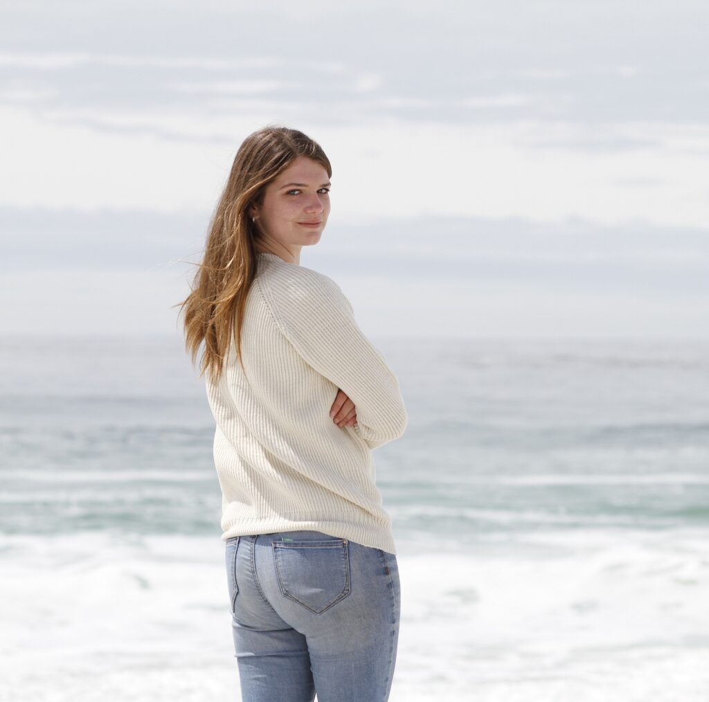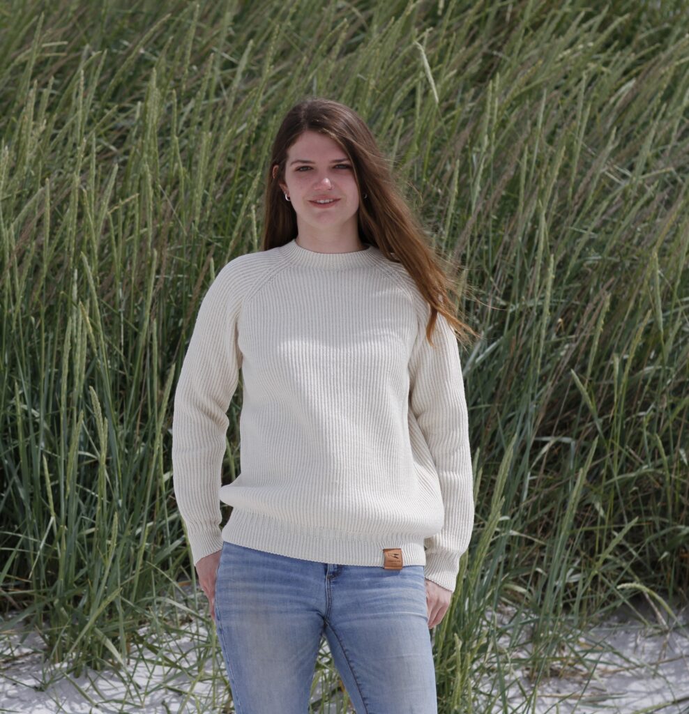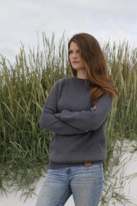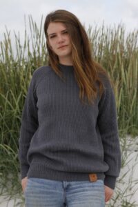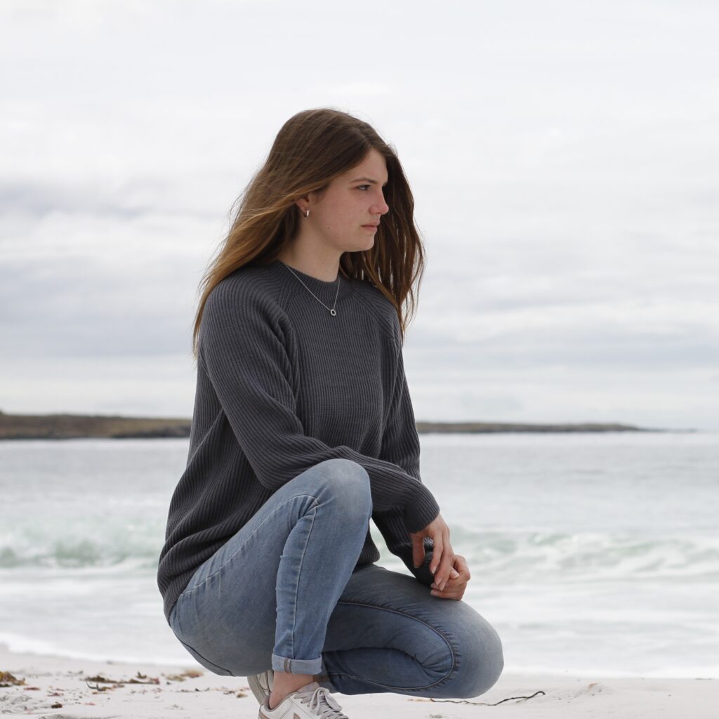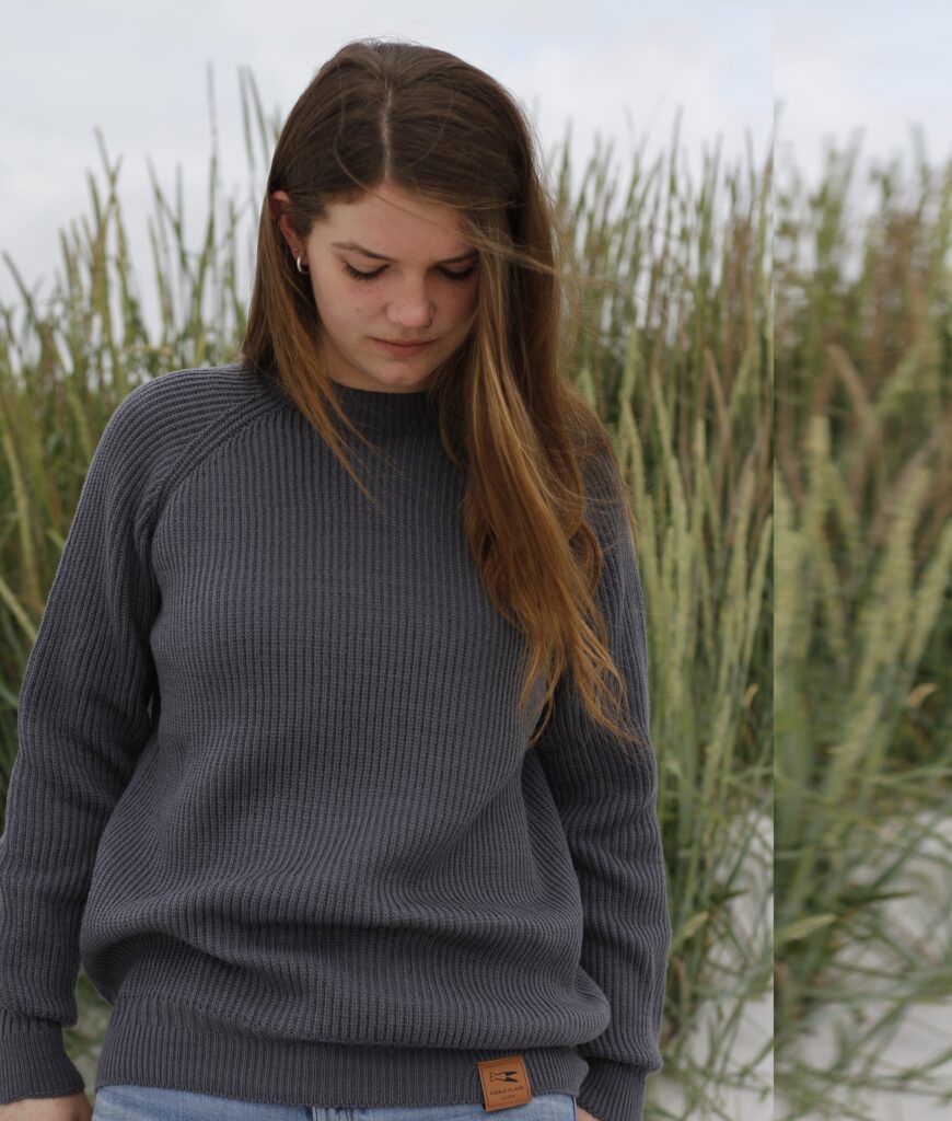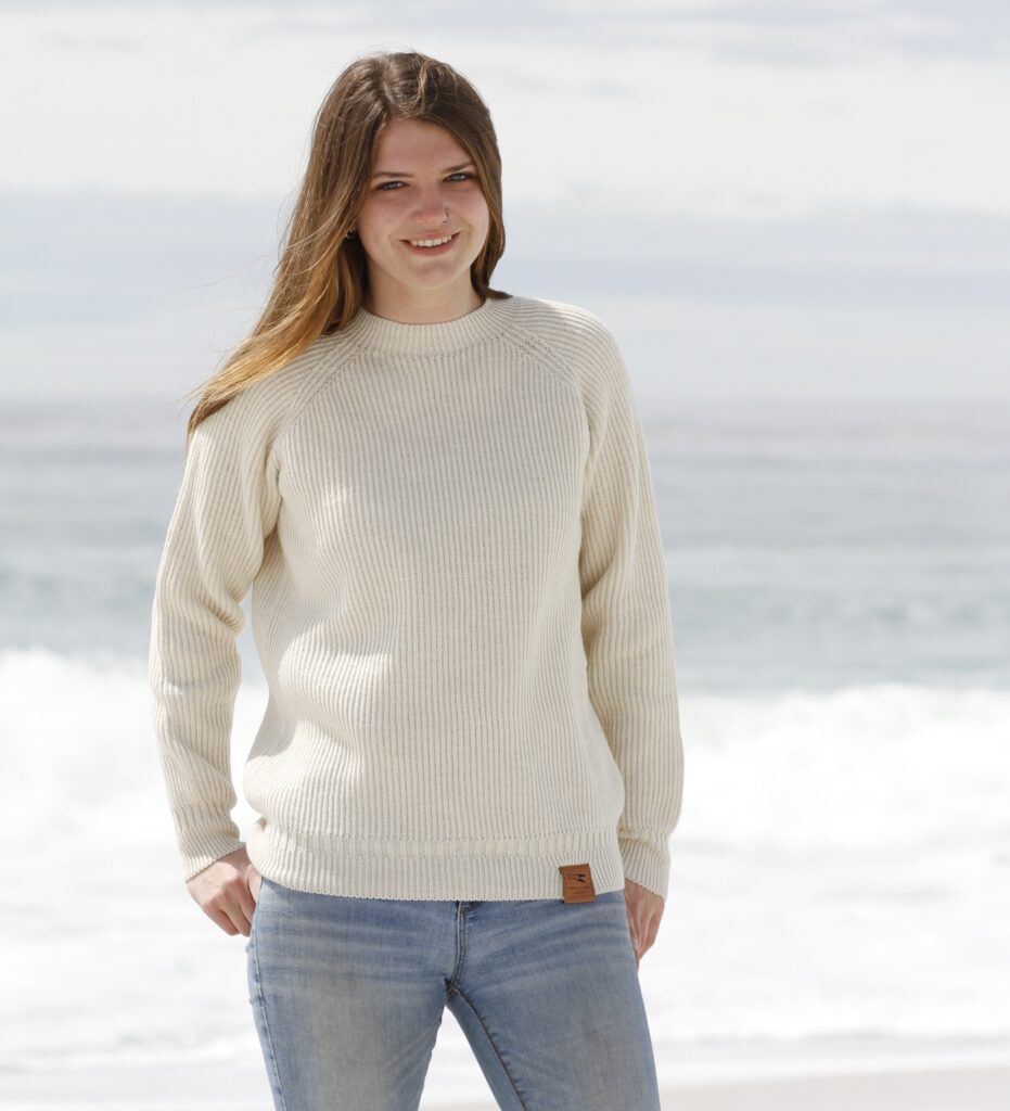 The wool is milled and knitted in the UK using a seamless knit meaning there is no waste and this makes the jumper comfortable to wear.
